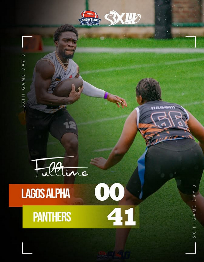 Panthers Sports continued their fearsome march, crushing Lagos Alpha Flag Football 41–0 in a flawless performance that kept them top of the standings and undefeated this season.