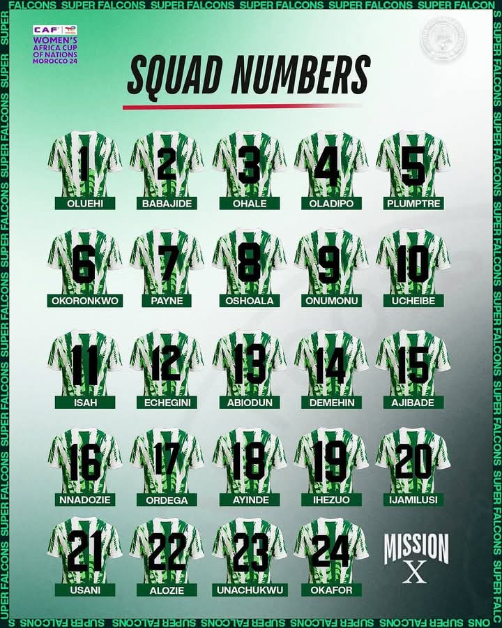 Nigeria’s Super Falcons have officially unveiled their squad numbers ahead of the 2024 CAF Women’s Africa Cup of Nations (WAFCON) set to kick off in Morocco today.